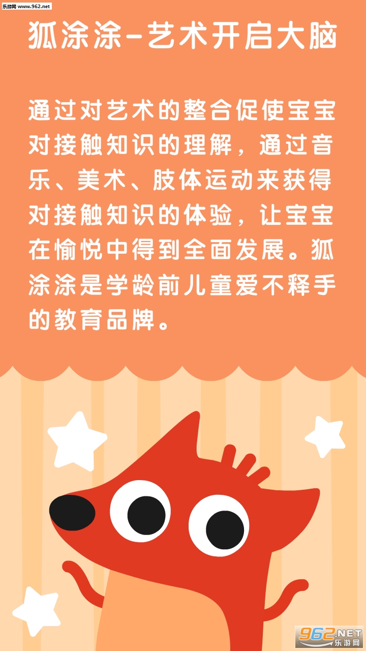 狐涂涂以美国艺术开启大脑(OMA)教育理念为基础,适用3-6岁宝宝最舒适的学习方式,通过艺术+学科,利用儿童的直观思维,让孩子更容易学习知识,增强大脑的联结和对艺术审美能力的提高,让家长对宝贝的成长放心。