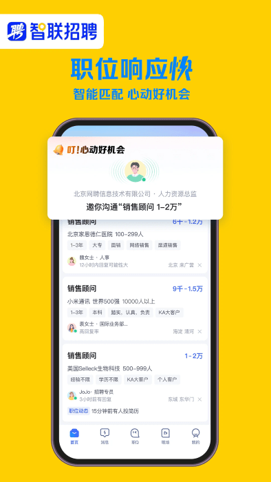 2、理想职位分分钟到碗里!手机上智联,求职超方便,靠谱工作随“薪”选!