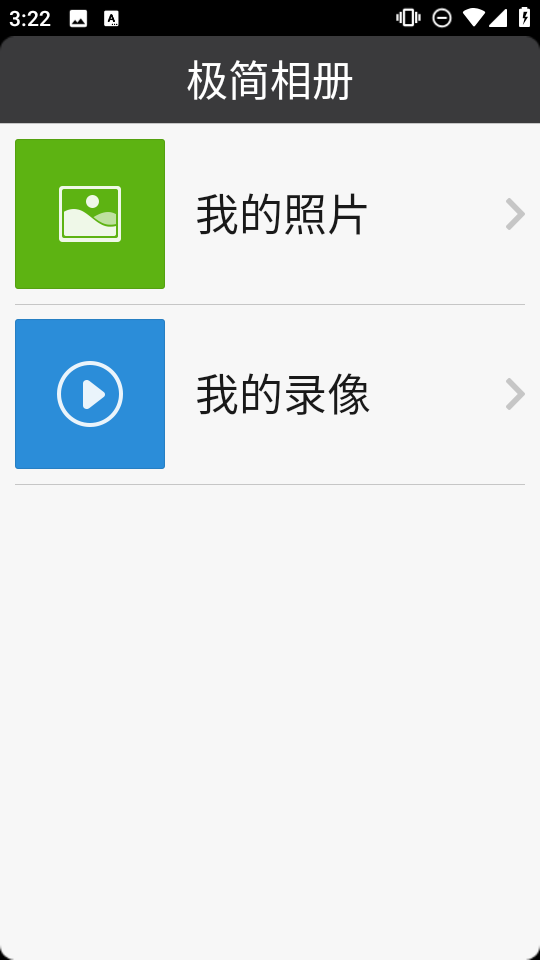 1、进入极简相册点击我的照片查看图片或选我的录像,或选我的录像浏览视频内容并进行管理和操作。