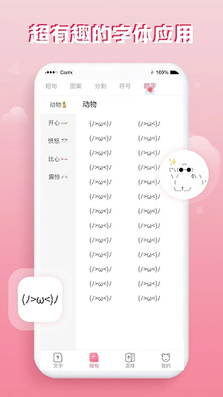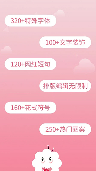 花样字体大全是一个字体美化工具,拥有数百款精美字体涵盖多种风格,提供丰富装饰效果提升文字视觉表现,支持分享到社交平台和直接复制使用,内置大量文案颜文字特殊符号等资源分类细致,让文字不再单调为社交动态增添创意,满足用户在个性昵称网名制作。