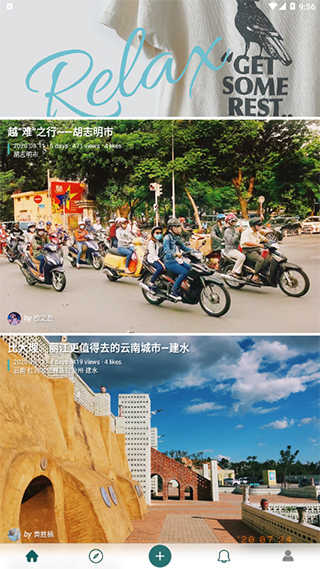 首次打开去看看旅行APP,首页即呈现丰富多样的创意出行日记与动态轨迹分享,灵感触手可及。
