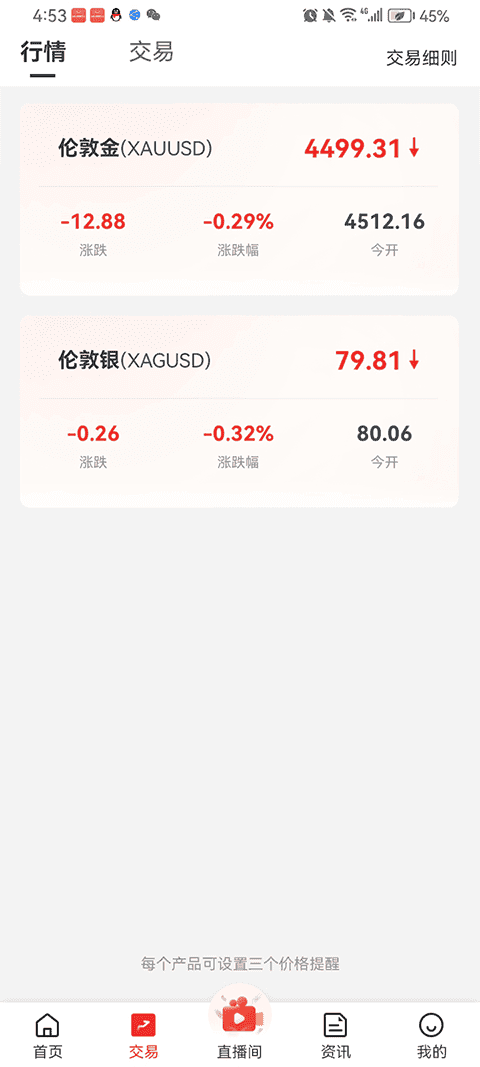 2. 进入行情页面,选择伦敦金”或伦敦银”,借助K线图与多维度技术指标研判趋势。