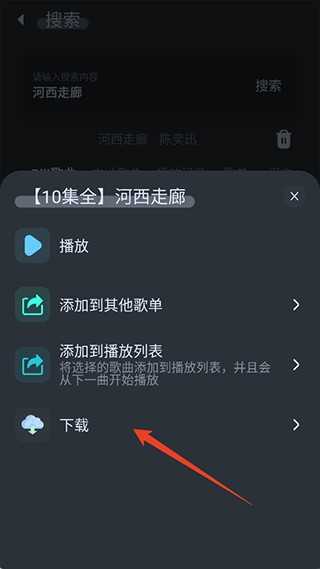 在弹出的操作菜单中,选择下载”按钮,系统将自动开始解析并准备下载该音源。