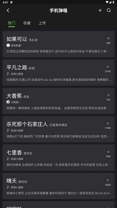 在手机弹唱”模块中,用户可选择喜欢的歌曲开启实时弹唱练习。系统会根据你的演奏自动匹配伴奏与和弦提示,让练习更像一场小型演出。