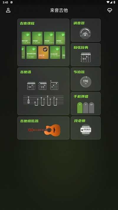 除曲谱与弹唱外,APP还配备高精度调音器与智能节拍器,确保每一次练习都建立在准确的音准与稳定的节奏基础上。同时,吉他模拟器让你无需实体乐器也能在手机上自由拨弦、创作旋律。