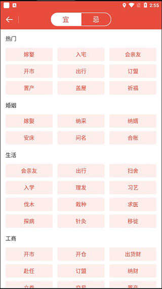 5、App提供多种热门事件类型供用户选择择吉,如结婚、订婚、出行、签约等,精准匹配不同生活场景需求。