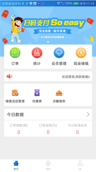 网联客APP是一款功能强大的店铺经营收银管理软件,能够帮助用户轻松管理各种店铺经营数据,随时查看店铺的营收情况,让店铺管理更加方便快捷。软件方便商户查询订单交易订单统计等数据平台,有任何问题可联系在线客服。它可以为食堂商户提供便捷的收款服务,让用户的收款变得更加的轻松,显著的提升收款的效率;在这里,每一个用户都拥有专属的收款码,可快速的向客户出示收款码,客户扫描,即可完成一次收款,让忘带现金的客户也能完成商品的购买,十分的方便;同时,在收到对应的款项时,会使用语音进行播报,解放了用户的双眼,轻松就能了解到收款信息,并对收款情况进行了记录,直观的展现在应用上,可自由的查看和校对,让用户不会错收以及漏收任何一个款项,非常的具有实用性。