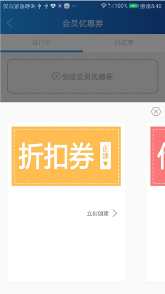 4、关系维护,商家可以在线创建会员优惠券用于维护与会员的关系