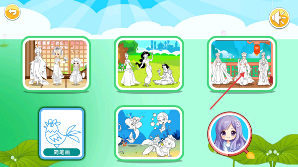 2. 在场景选择页中,挑选心仪的公主主题线稿。