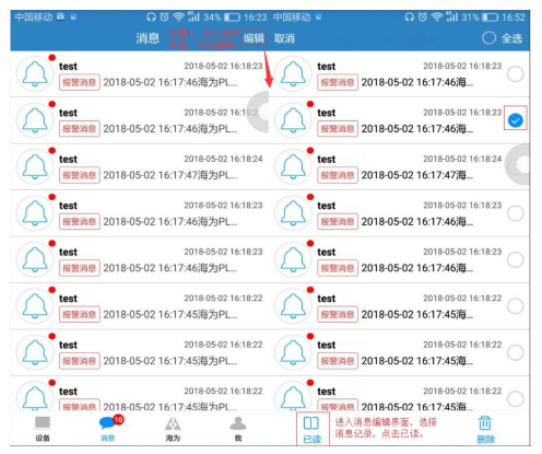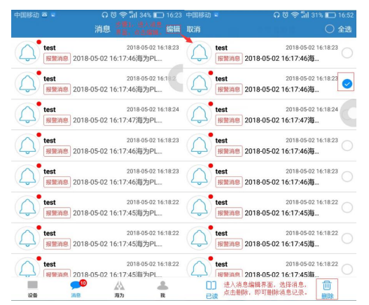 消息管理操作:在【消息】界面点击右上角【编辑】,可批量选择消息进行标记为已读或删除,保持消息列表整洁有序。