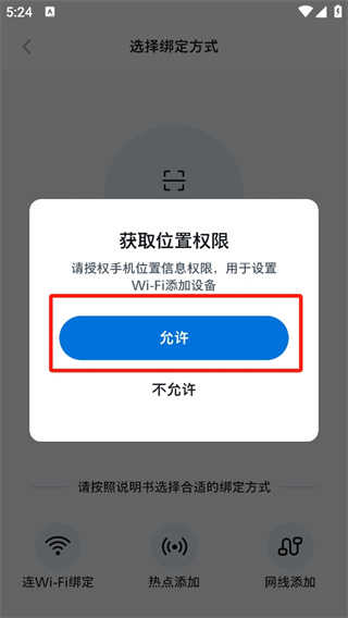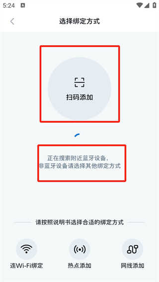 2、选择扫码绑定方式,跳转至扫描界面。