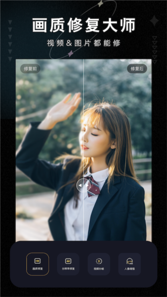 画质修复大师是一款由重庆树袋熊信息技术有限公司精心打造的智能图像与视频增强工具,专为解决模糊、失真、色差、老旧褪色等常见画质问题而设计。无论你是普通用户、摄影爱好者,还是专业内容创作者,这款APP都能通过AI驱动的先进算法,一键提升图片和视频的清晰度、色彩表现与细节质感,让珍贵回忆重焕新生,让创作内容更显专业。