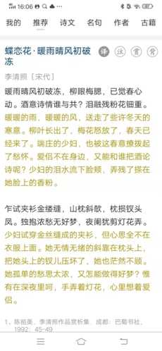 古诗文网App汇聚超100万首历代诗文,每一篇均配有专业翻译、详细注释与赏析,支持多维度学习体验。无论是深度研读还是碎片化浏览,都能满足你的需求。