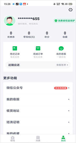 4、消费,微零花高额分期卡需要使用身份证实名认证才能使用