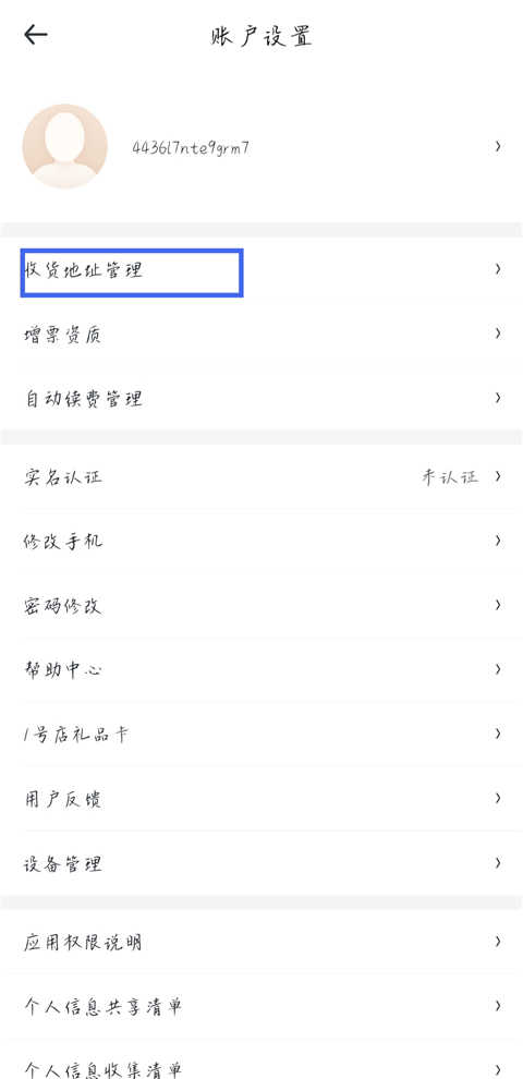 2、在设置菜单中选择【收货地址管理】。