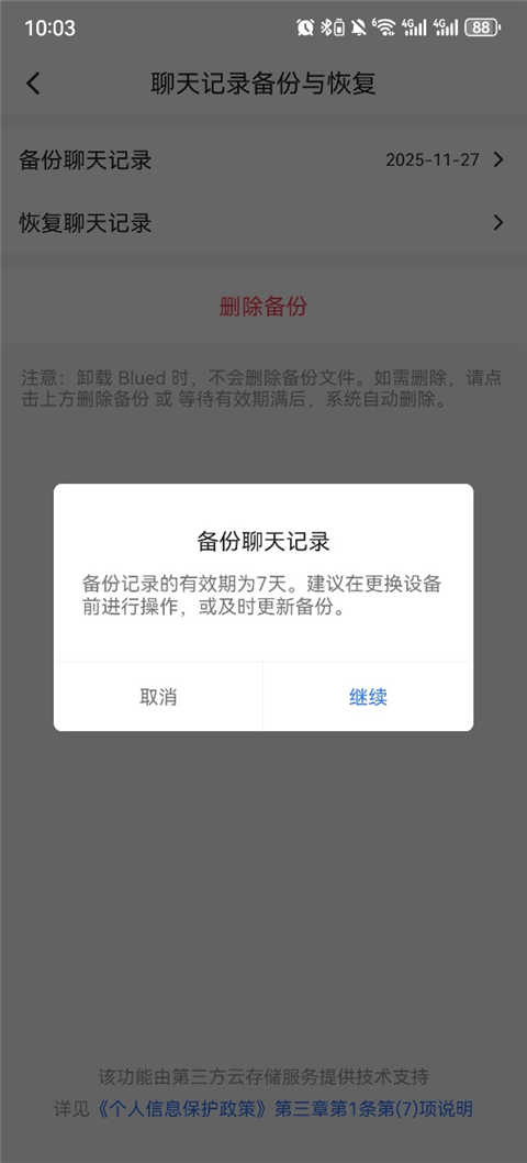 blued极速版官方版怎么备份聊天记录