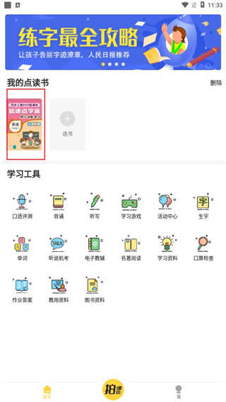 6、若未找到对应教材,可点击拍书”功能,拍摄任意书籍封面快速导入学习内容。