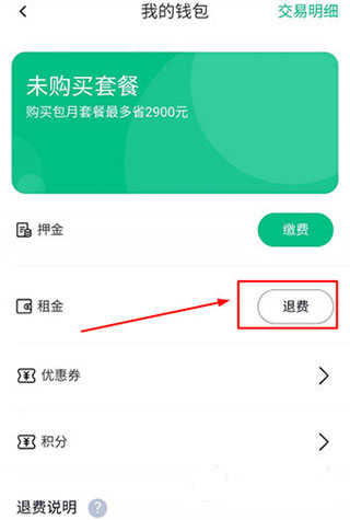 2、在租金信息右侧找到退费”按钮,点击后按提示提交申请,审核通过后押金将原路退回。