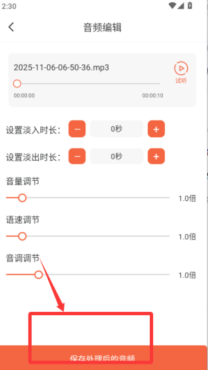 4、处理好的音频点击保存即可导出到本地,方便分享或用于其他视频、语音项目中。
