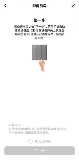 按照屏幕提示完成配网流程,确保设备处于可连接状态。