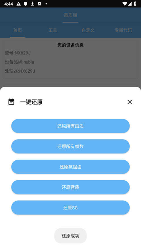 3、确认还原后,系统将自动恢复至手机出厂默认画质,确保游戏兼容性与稳定性。