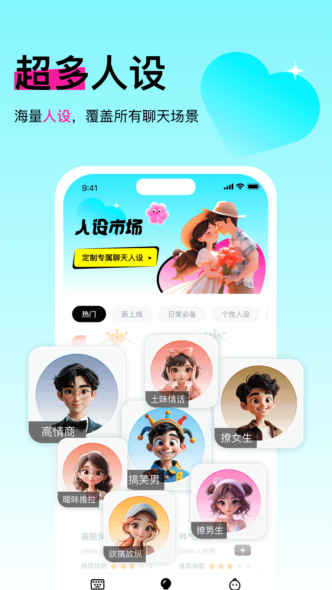 精品人设:内置200+精心设计的人设模板,覆盖甜妹、高冷男神、职场精英等多种风格,支持深度定制,打造只属于你的聊天人格。