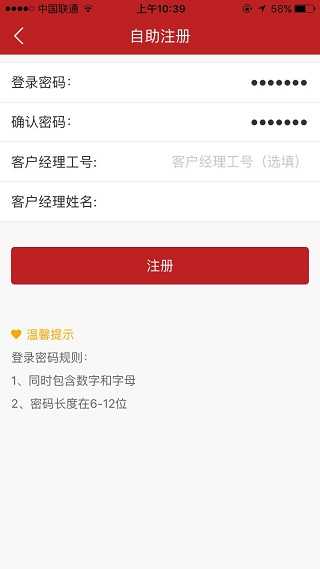 6、点击下一步”按钮,设置登录密码、确认密码、客户经理工号(选填);
