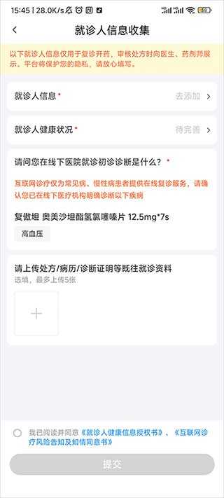 最后,上传有效的处方、病历或诊断证明等既往就诊资料,确认无误后提交申请,即可完成处方药购买流程。