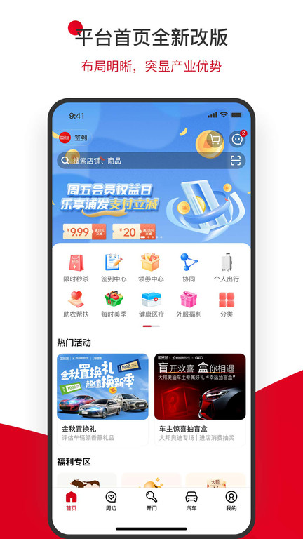 1.汽车服务,新车上市、二手车市场、4S店保养服务,优惠购车,权益专享。