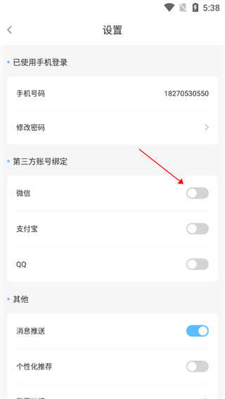 5、然后在设置界面,找到第三方账号绑定”,根据需求选择【】即可。