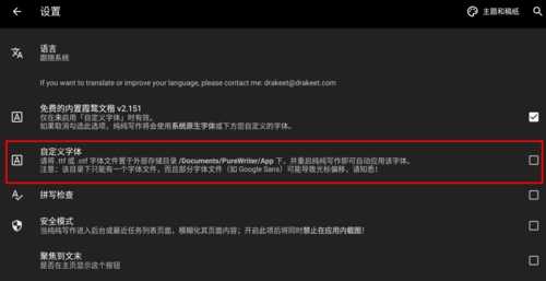 1、在设置页面找到自定义字体”,开启勾选即可。
