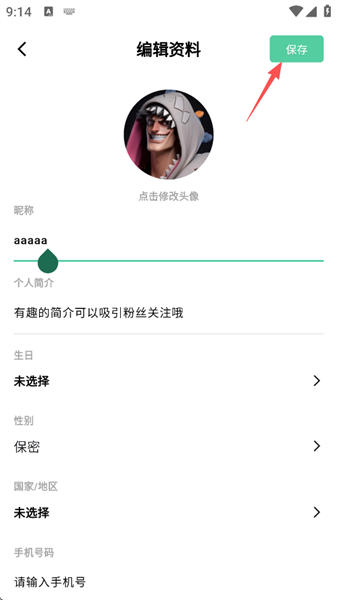 5、以修改昵称为例,完成修改,点击屏幕右上角保存”。