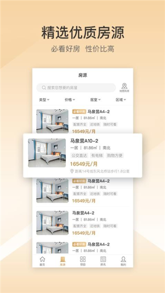 2、人性化设计,智能匹配自己想要找的房源类型,精品优质房源推荐,随时随地获取最新房源。