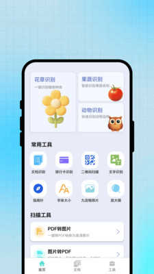 智扫云枢app是一个包含了多种常用工具与扫描工具的手机工具箱软件,涵盖扫描识别、生活辅助各个方面的巩固,全面满足用户的使用需求,可以轻松识别花果蔬菜,还能识别文字和二维码,包含多种文档格式转换功能,以满足人们日常办公的需要。这款软件采用简洁的界面设计,各类工具都会进行分类,用户可以快速的找到需要的功能来使用。