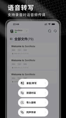 SoniNote软件是一款能够高效完成会议记录的软件,集多种功能于一体,轻松实现录音转写和翻译,支持多角色分离,让大家在记录会议内容的时候可以更高效。包含同声传译、实时录音识别、语音转写等功能,不同国家的语言都能轻松识别,采用安全传输加密方式,支持多种格式分享,让用户获得更便捷的体验,在不同场景都能使用。