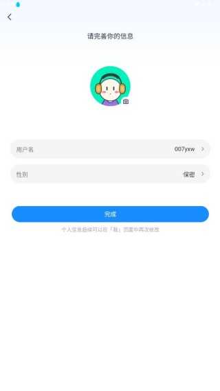 4、完善自己的资料,选择合适的用户名以及性别,加入其中。