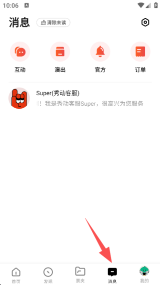 4、在消息”栏中,你可以接受线上用户的互动消息,也能查看演出官方以及订单发来的消息。