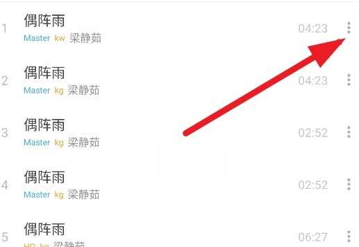 在ikun音乐app中下载喜爱的歌曲非常简单。首先,找到你想保存的歌曲,点击其右侧的···”菜单按钮。