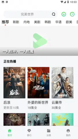 1、启动应用后,可在首页搜索影片或点击新剧、内地等分类标签浏览内容。