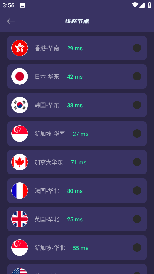 2、进入主界面后,根据需求选择合适的加速线路节点;