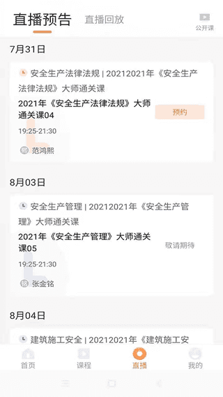 5、陈列出了直播预报,可明确看到直播课程的安排,找到需要参与的课程就能提前知道直播时间;