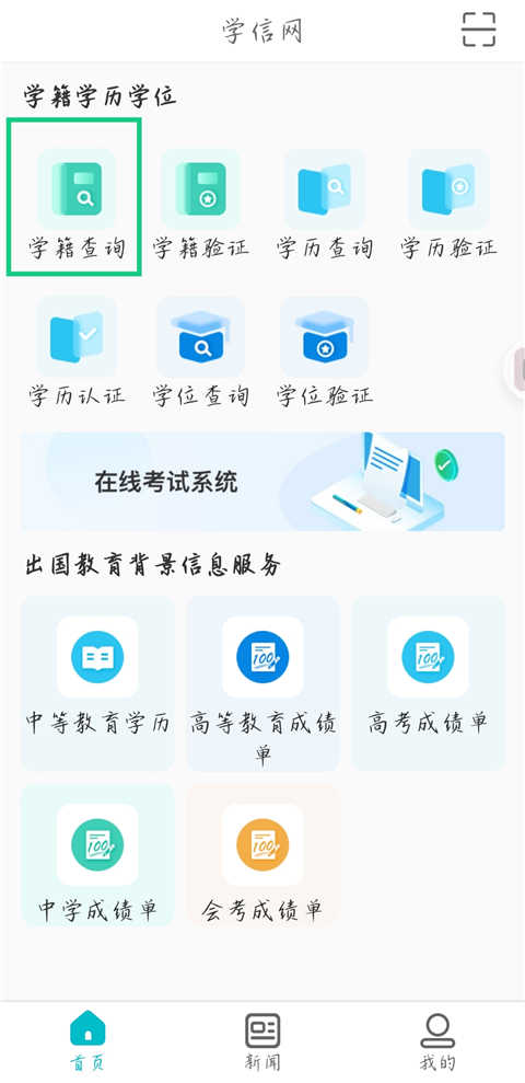 1、进入学信网app,点击【学籍查询】。