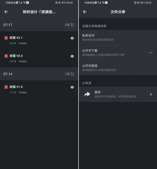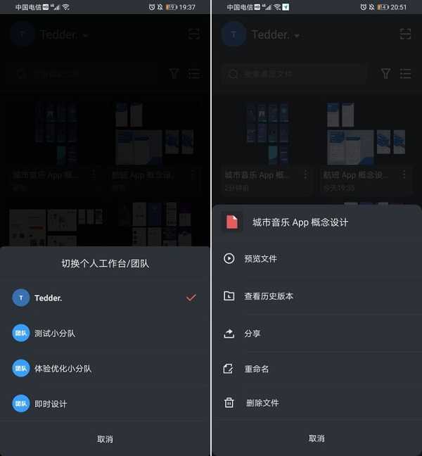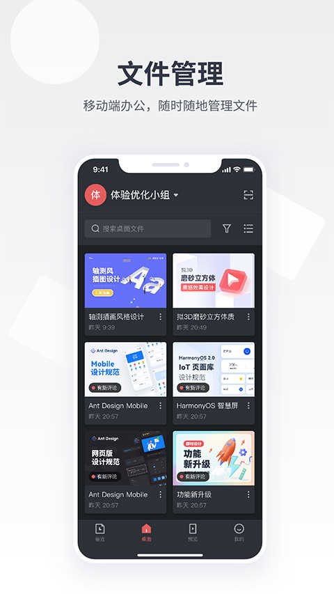 如果团队成员出门在外,临时需要查看或者分享某个项目恰好身边又没有电脑时,也可以通过 App 来实现个人及团队项目的各种文件管理相关操作。