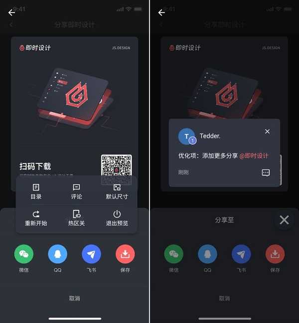 当设计师在网页端编辑任一画板内容时,所做的修改都会在 App 里同步展示,每一步操作实现了什么样的效果都一目了然,遇到不满意的情况可以快速调整,绝对能帮你省去大量的后期工作!