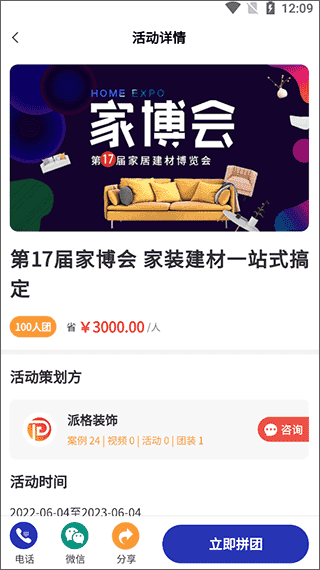 1、首先,打开装修云课堂app,在活动页面的团装活动中点击你想要参加的活动;