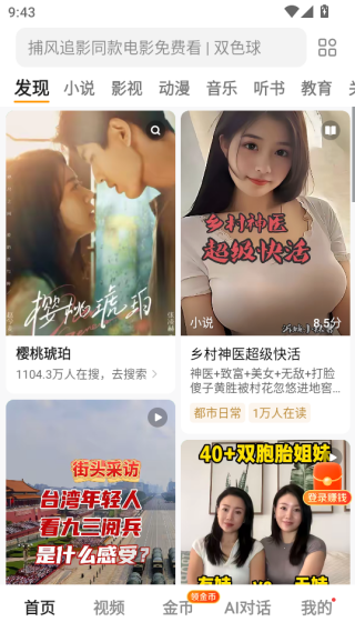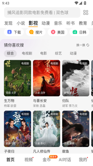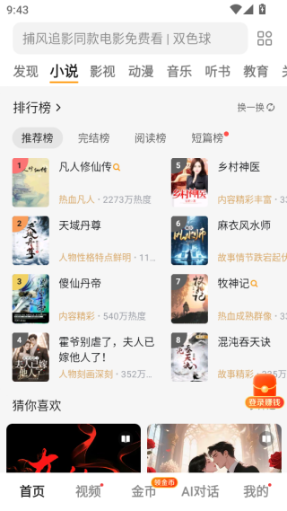 1、打开软件进入到首页,这里可以发现超多的影视小说资源,你可以观看这些给你推荐的。