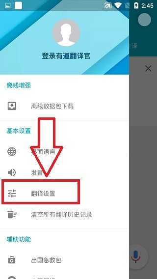 1、打开App,点击左上角菜单栏,进入【翻译设置】。