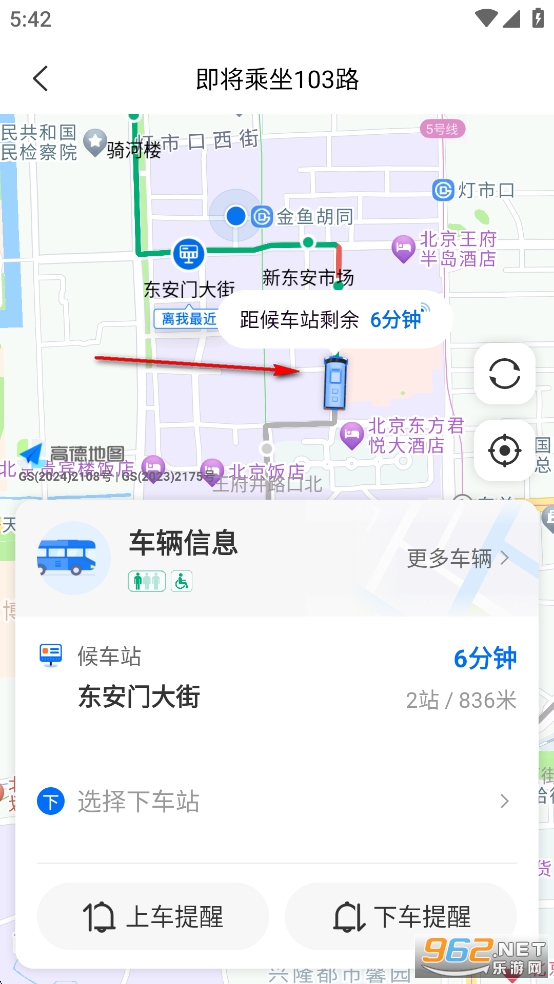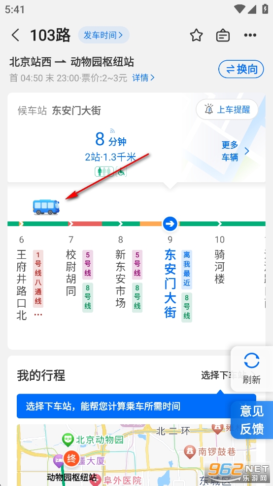 即可看到路线上103路公交的实时位置信息