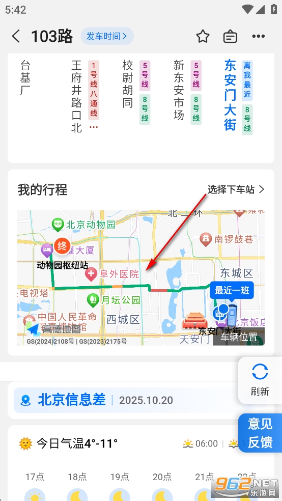 可以看到地图上103路公交的实时位置信息