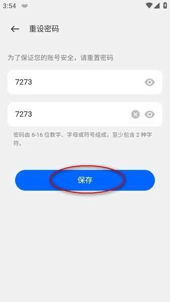 4、完成短信验证后,输入新密码并点击保存”,即可成功设置登录密码。